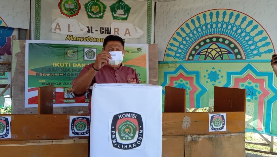 “Siswa siswi di sekolah sebagai agen perubahan dan calon pemimpin dimasa depan tentu perlu memahaminya. Maka MTs. Al-Chaeriyah Ma’arif Simboro melaksanakan pemilihan Ketua dan Wakil Ketua OSIM secara demokrasi,dan tetap mematuhi protokol kesehatan.” Terang Bahar