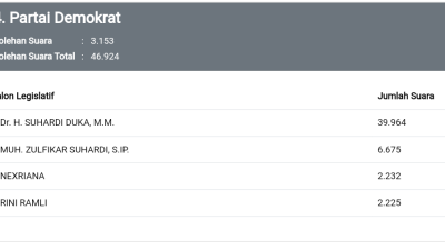 MAMUJU, RAKYATSULBAR.COM — Hasil Real Count KPU untuk perolehan suara legislatif DPR RI 2024 dari dapil Sulawesi Barat (Sulbar) untuk Partai Demokrat Sulbar menimbulkan kejanggalan.