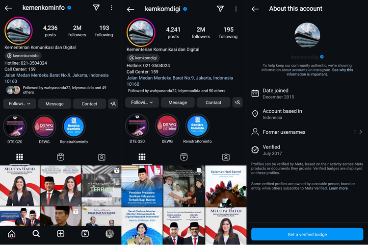 Akun Instagram Kominfo yang sebelumnya memiliki username atau handle @kemenkominfo, kini resmi berubah menjadi @kemkomdigi.