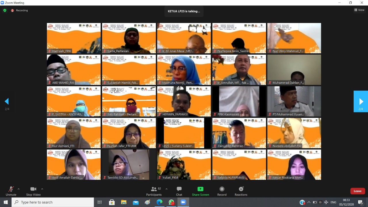 MAKASSAR,RAKYATSULBAR COM – Lembaga Penelitian dan Pengembangan Sumber Daya UMI (LP2S UMI) menggelar Workshop Kekayaan Intelektual Hasil Riset bagi Dosen Tetap UMI secara virtual, 5 Desember 2020.