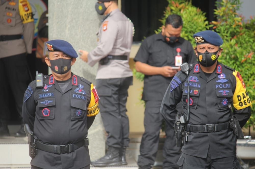 MAKASSARA,RAKYATSULBAR.COM–Kepolisian Daerah (Polda) Sulawesi Selatan (Sulsel) gelar apel penyambutan BKO Brimob Polda Sulsel dalam rangka pengamanan Pilkada serentak tahun 2020 yang dipimpin langsung Kapolda Sulsel Irjen Pol Drs. Merdisyam M, Si,di Mapolda Sulsel Jalan Perintis Kemerdekaan km 16 Makassar, Kota Makassar, Sulawesi Selatan Senin (07/12)