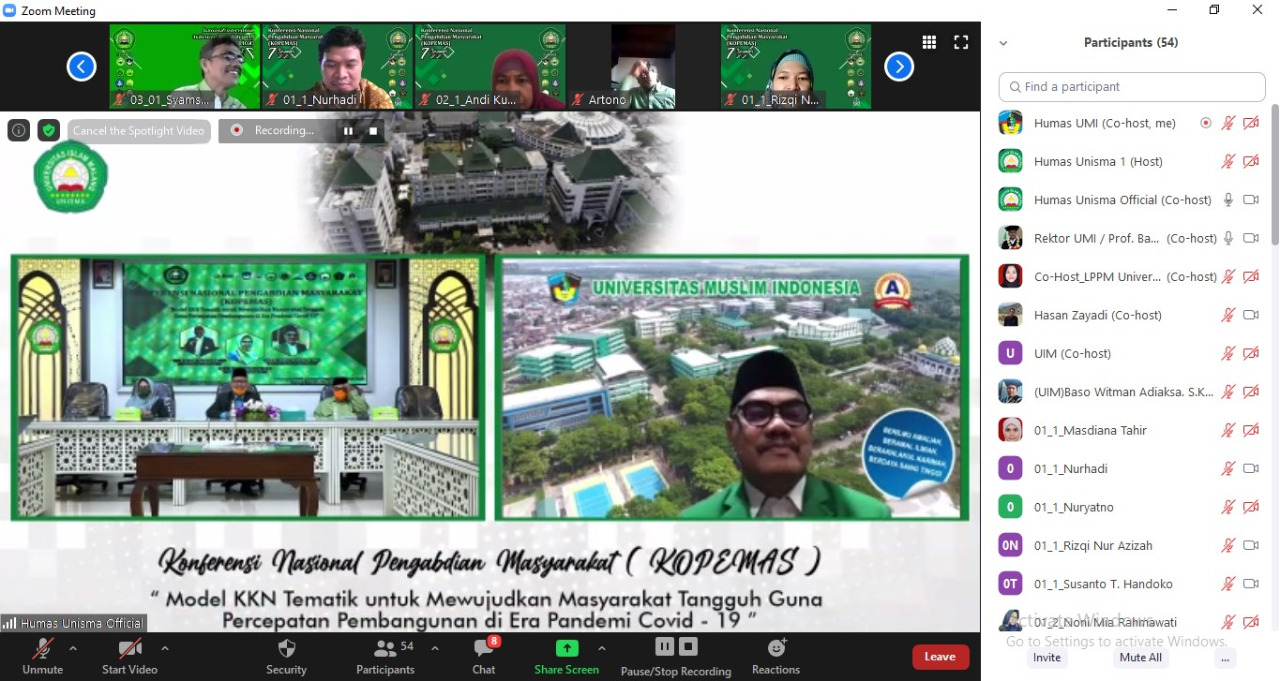 MAKASSAR,RAKYATSULBAR.COM– Rektor Universitas Muslim Indonesia (UMI) Prof. Dr. H. Basri Modding, SE.,M.Si. hadir sebagai Keynote Speaker pada Konferensi Nasional Pengabdian kepada Masyarakat (KOPEMAS) Lembaga Penelitian dan Pengabdian kepada Masyarakat (LPPM) Universitas Islam Malang (Unisma) secara virtual melalui aplikasi video teleconference zoom, Senin (07/12).