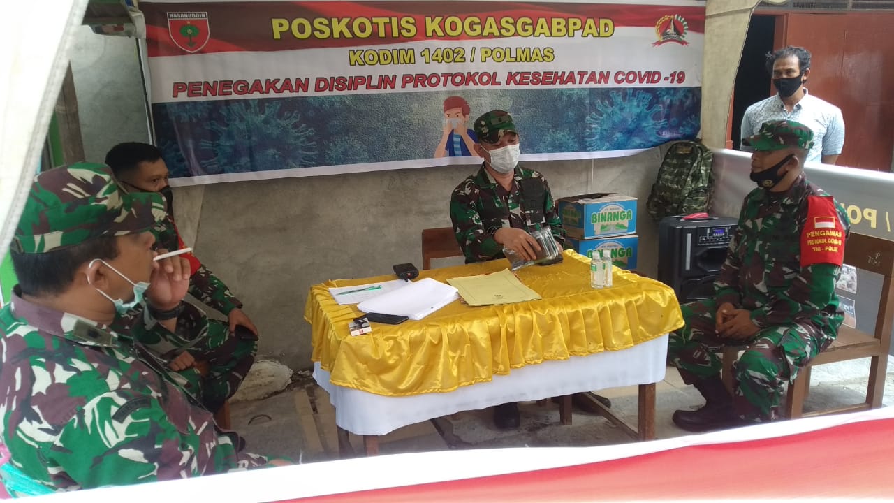 Komandan Kodim 1402/Polmas Letnan Kolonel Arhanud Hari Purnomo, S.Hub.Int. M.Han mengatakan Bahwa, Untuk mempercepat Penanganan Wabah Virus Corona atau Covid-19 di Kabupaten Polewali Mandar, Maka Satuan Tugas (Satgas) Penanganan Covid-19 Kodim 1402/Polmas telah meningkatkan Operasi Pendisplinan dan Kegiatan Edukasi terhadap Protokol Kesehatan di beberapa titik dengan mendirikan Posko Gabungan Terpadu (KOGASGABPAD) Percepatan penanganan Covid-19.