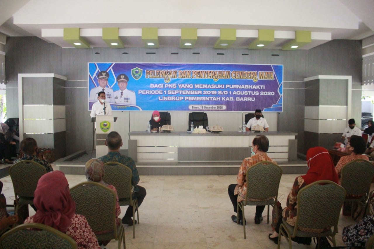 Bupati Barru Ir. H. Suardi Saleh M.Si, yang dikenal sebagai pemimpin humanis dan tanpa sekat ini, melepas dan membagikan cenderamata kepada sekira 131 Aparatur Sipil Negara (ASN) Pemerintah Kabupaten Barru yang memasuki masa purnabakti atau pensiun. Hal ini sebagai bentuk penghormatan yang digelar khusus bagi ASN yang pensiun medio September 2019 sampai Agustus 2020. Kegiatan ini dilaksanakan di Baruga Singkeru Ada’e, Rujab Bupati Barru, Rabu (16/12).