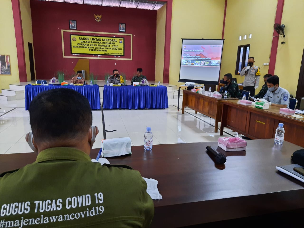 Rakor Lintas sektoral dalam rangka kesiapan operasi lilin siamasei 2020 pengamanan Natal 2020 dan Tahun Baru 2021 ini dihadiri langsung oleh Bupati Majene, Kapolres Majene, Dandim 1401 Majene, Ketua DPRD, Dinas Kesehatan, Kompi 721, BMKG, Satpol PP, Dishub, Tim Gugus Covid-19, FKUB, Tokoh Agama (Islam, Kristen), Jasa Raharja, Siaga 8.6 dan tamu undangan lainnya.