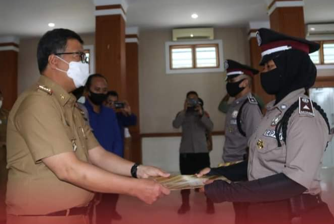 MAMUJU,RAKYATSULBAR.COM–Sekprov Sulbar, Muhammad Idris menghadiri Penutupan Pendidikan dan Latihan Dasar Satuan Pengamanan Kualifikasi Gada Pratama angkatan XVIII tahun 2020 Polda Sulbar PT Trisula bangkit bersama yang dilaksanakan selama 18 hari bertempat di Hotel Grand Mutiara, Selasa, 22 Desember 2020