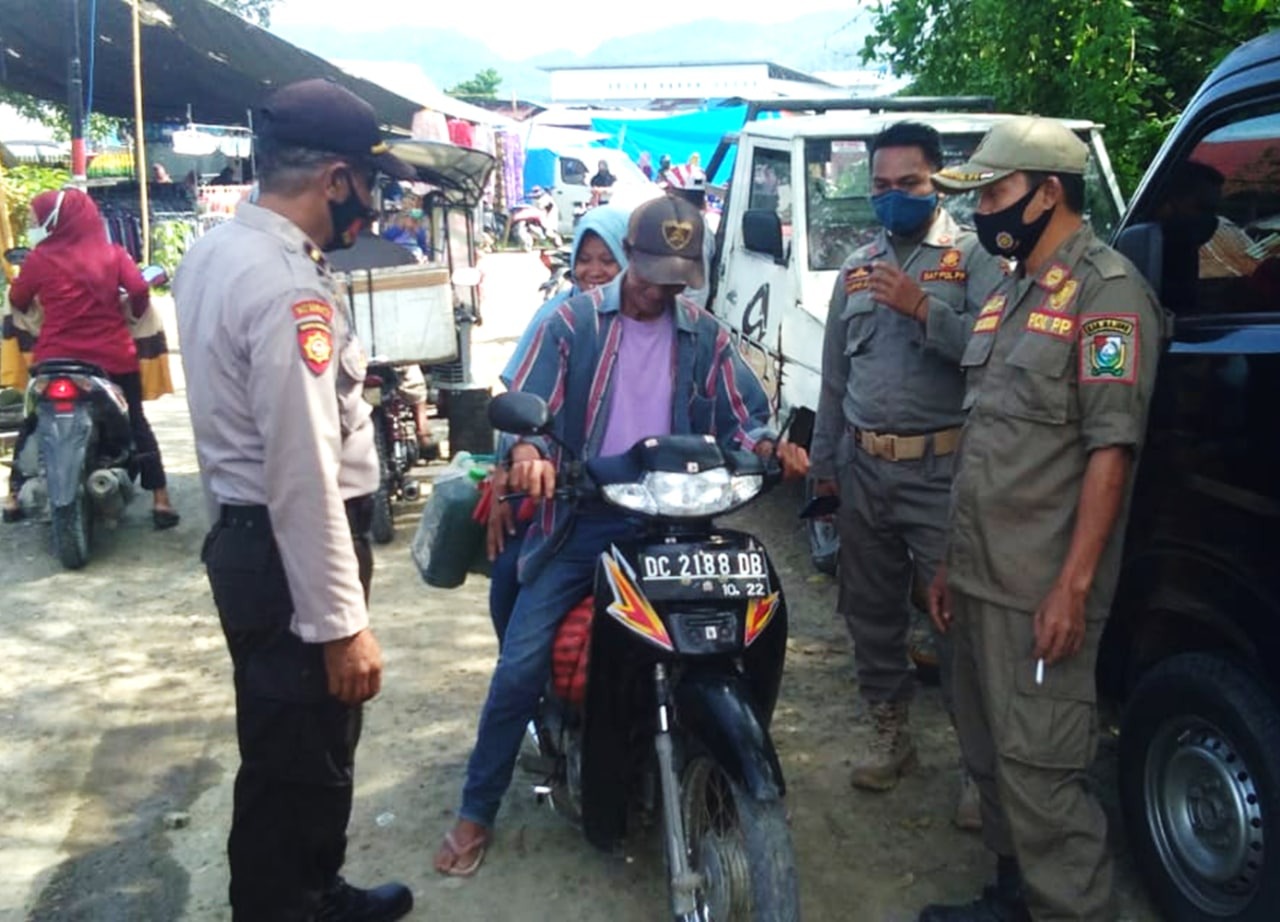 Polsek malunda terus bergerak melakukan tindakan tegas bagi masyarakat yang kedapatan tidak menggunakan masker baik pengunjung pasar maupun pengguna jalan yang melintas.