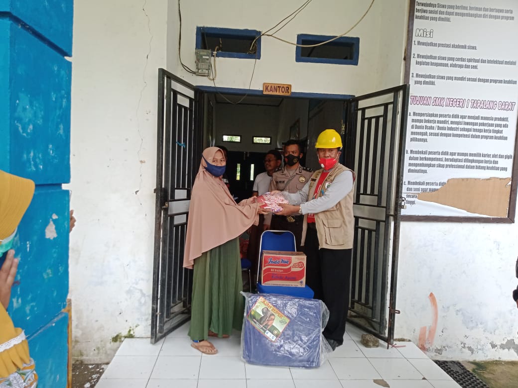 Dengan demikian kepala Sekolah SMKN 1 Tappalang Barat Sjhrir Tamsi di dampingi Ketua komite sekolah Jalaluddin Jadin dan Binmas Tapalang barat Briptu Munawir, menyalurkan paket bantuan kemanusian berupa Tenda, sembilan bahan Pokok (Sembako) dan pakaian,Rabu (27/01)