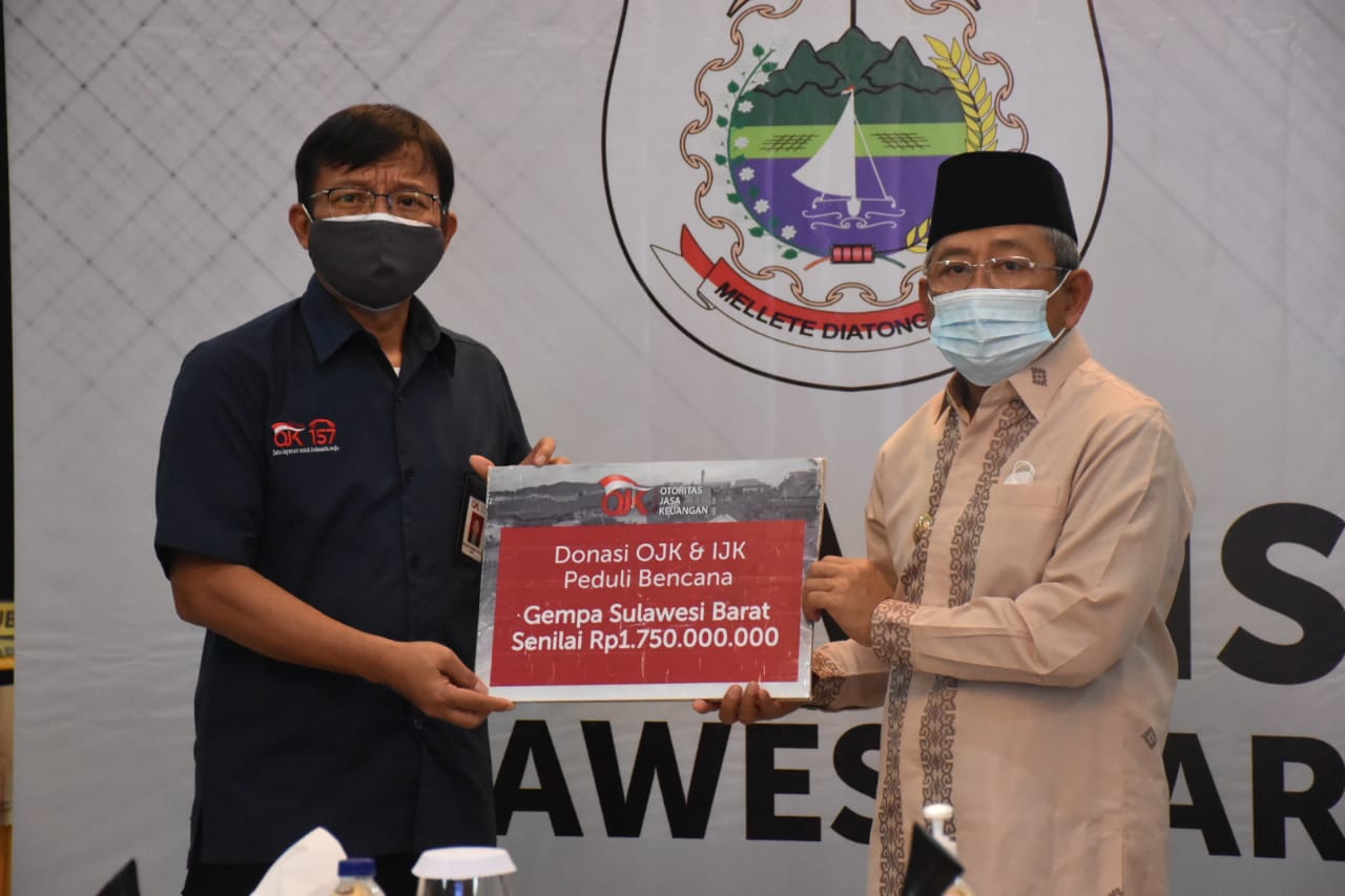 Secara simbolis penyerahan bantuan sebesar Rp1.750.000.000 miliar dilakukan oleh Kepala OJK Regional VI Sulawesi, Maluku dan Papua, Muhammad Nurdin Subendi, kepada Gubernur Sulbar, Ali Baal Masdar.