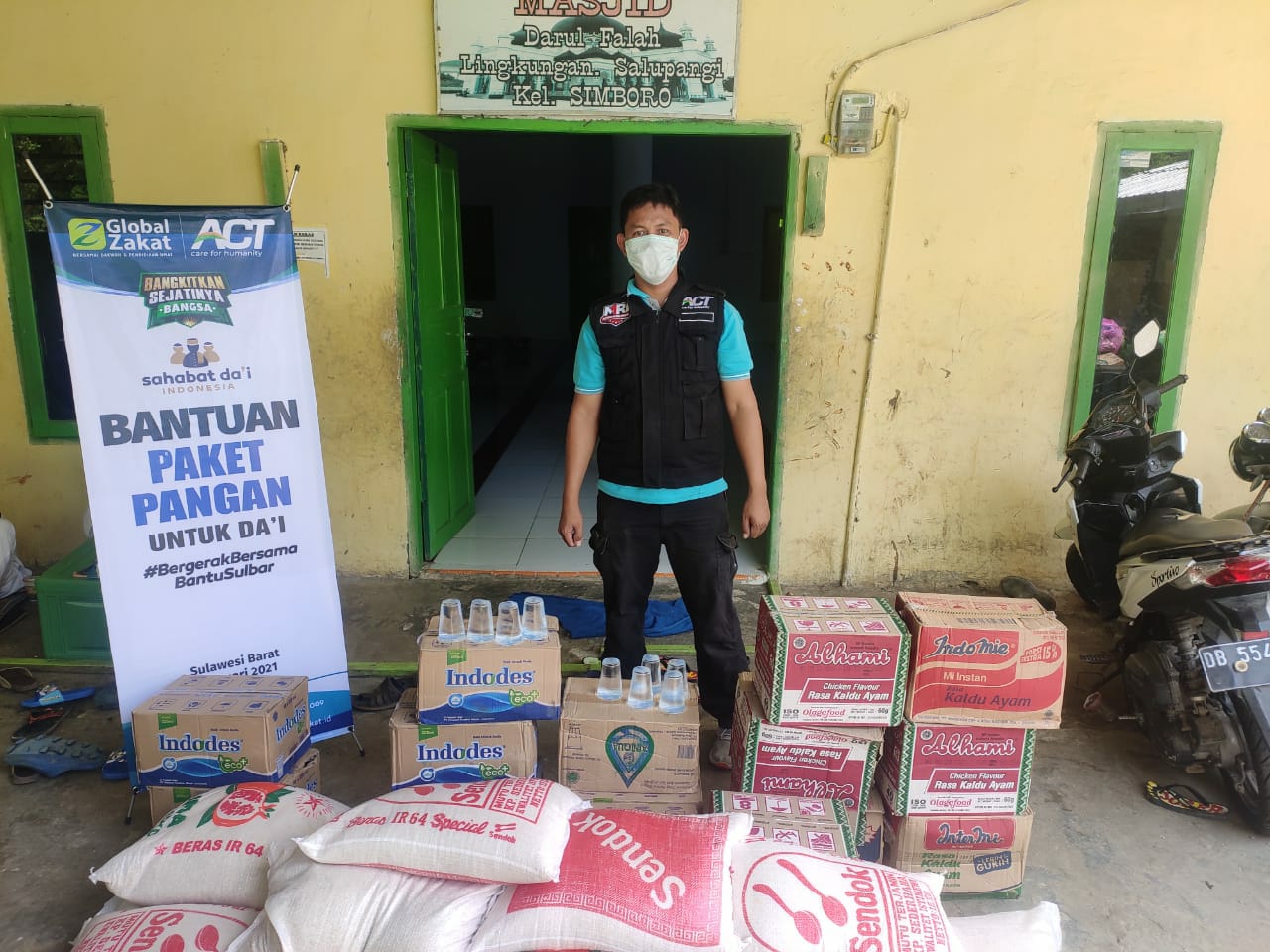 MAMUJU,RAKYATSULBAR.COM–Implementasi Kemitraan Bantuan Paket Pangan untuk da’i dan distribusi Perlengkapan Ibadah paaca gempa Mamuju 6,2 M,Sabtu (06/03)
