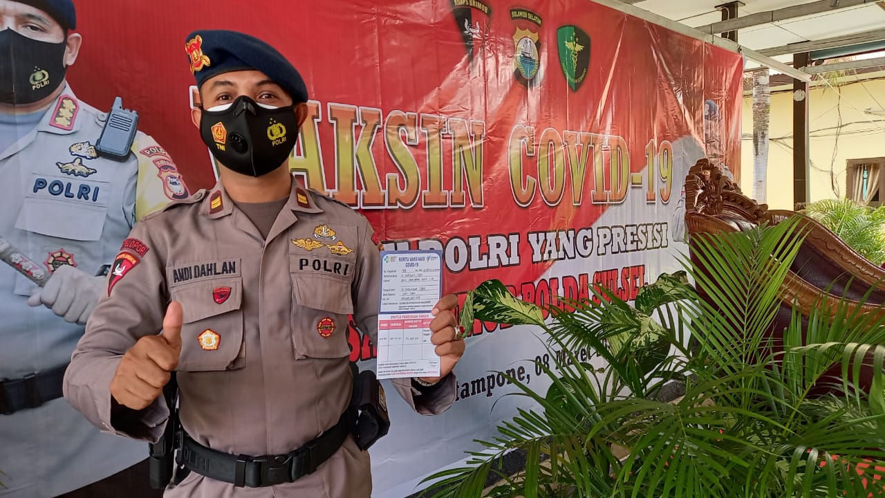 ” Setelah divaksin saya tidak merasakan gejala atau efek yang berlebih dari vaksin ini, hanya saya merasa sedikit mengantuk dan lapar, jadi saran saya sebelum menerima vaksin Covid 19 dianjurkan untuk tidur yang cukup dan makan terlebih dahulu sehingga efek dari kantuk dan lapar akibat vaksinasi dapat diminimalisir,” kata AKP Andi Muhammad Syafe’i.