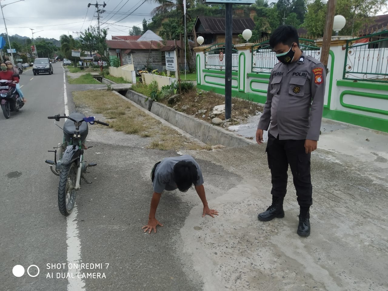 Lanjut dalam Kegiatan Tersebut Anggota memberikan himbauan kepada seluruh warga Masyarakat, agar tetap selalu memperhatkan Protokol Kesehatan dalam Giat ini Juga Anggota Memberikan Hukuman disiplin Berupa Push Up Kepada Warga yang ditemukan tidak taat pada Prokes..
