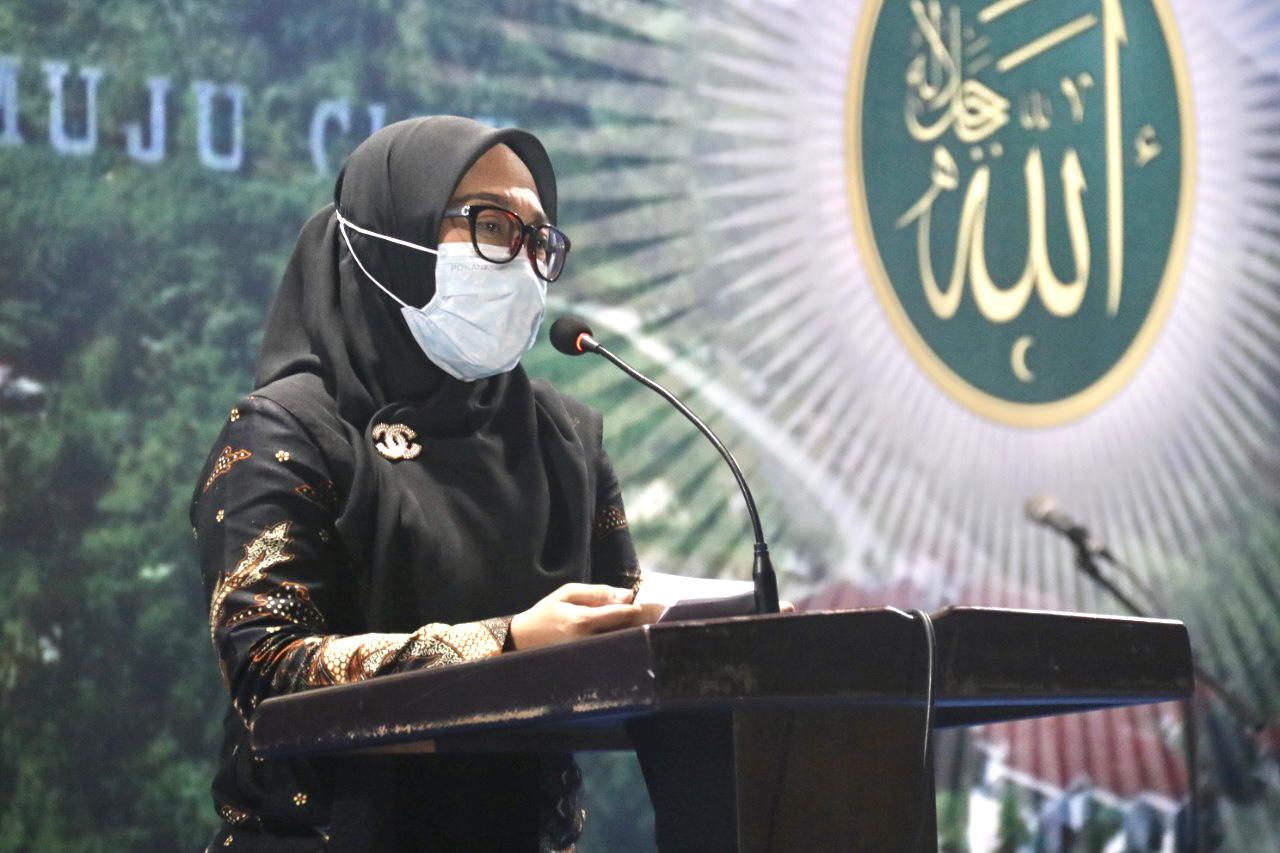 Sutinah mengucapan selamat bertanding bagi semua peserta dari setiap kecamatan.