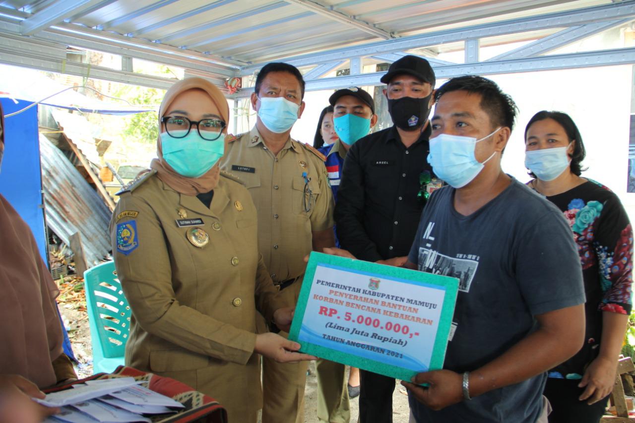 MAMUJU,RAKYATSULBAR.COM—Sebanyak sebelas kepala keluarga (KK) yang mendiami delapan unit rumah yang telah tertimpa bencana kebakaran di Jl. kelapa, kecamatan Mamuju pada 11 Maret 2021, hari ini menerima bantuan berupa uang tunai dan sejumlah sembako, yang di serahkan sendiri oleh bupati Mmamuju Hj. Sitti Sutinah Suhardi di lokasi bencana, Selasa, (23/03/2021)