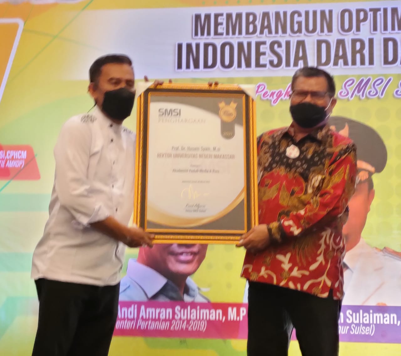 MAKASSAR,RAKYATSULBAR.COM – Rektor Universitas Negeri Makassar(UNM) Prof. Husain Syam kembali meraih penghargaan dari Serikat Media Siber Indonesia (SMSI).