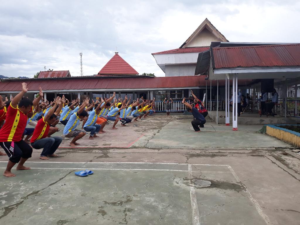 Bersama instruktur dari PELKESI, WBP tidak hanya diberi latihan kesehatan seperti biasa, tapi juga latihan pernapasan sebagai bentuk penanggulangan jika ada yang tertular Covid-19 sekaligus sebagai trauma healing bagi tahanan dan napi. Para WBP tampak antusias karena menganggap ini sebagai hiburan.