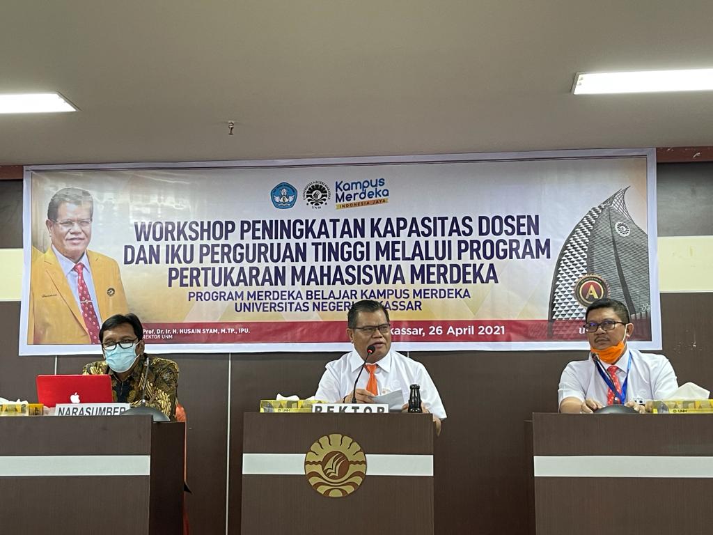 MAKASSAR,RAKYATSULBAR.COM–Universitas Negeri Makassar (UNM) menggelar workshop peningkatan kapasitas dosen dan Indikator Kinerja Utama perguruan tinggi melalui program pertukaran mahasiswa merdeka.
