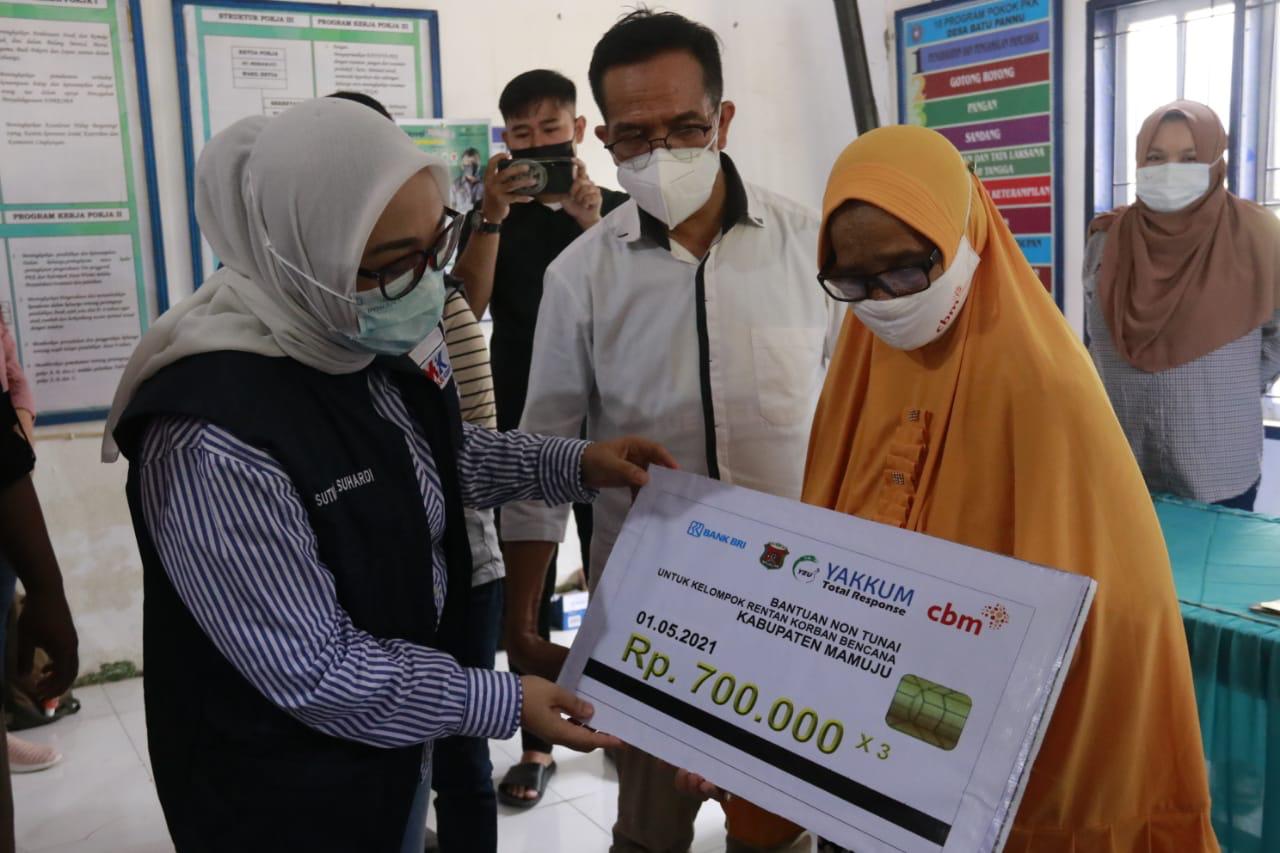 MAMUJU,RAKYATSULBAR.COM–Bupati Mamuju, Hj. Sitti Sutinah Suhardi mengapresiasi keputusan dari YAKKUM Emergency Unit (YEU) dan Christian Blind Mission (CBM) yang memberikan bantuan kepada warga yang masuk dalam kriteria kelompok rentan, menurutnya masih jarang lembaga yang perhatian terhadap kelompok tersebut. Ini disampaikan Bupati saat menyerahkan bantuan Non Tunai dari YEU kepada warga Desa Batu Pannu.