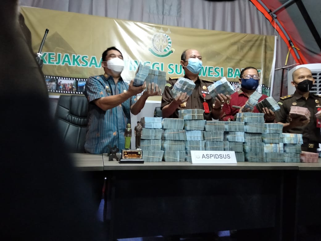 MAMUJU,RAKYATSULBAR.COM-Kejaksaan Tinggi Sulbar (Kejati) kembali merilis terkait pernyerahan dana mengembalikan pemotongan Dana Alokasi Khusus(DAK) pada bidang SMK Dinas pendidikan dan kebudayaan provinsi Sulbar tahun anggaran 2020,ditenda kantor sementara Kejati Sulbar,Kamis (6/5)
