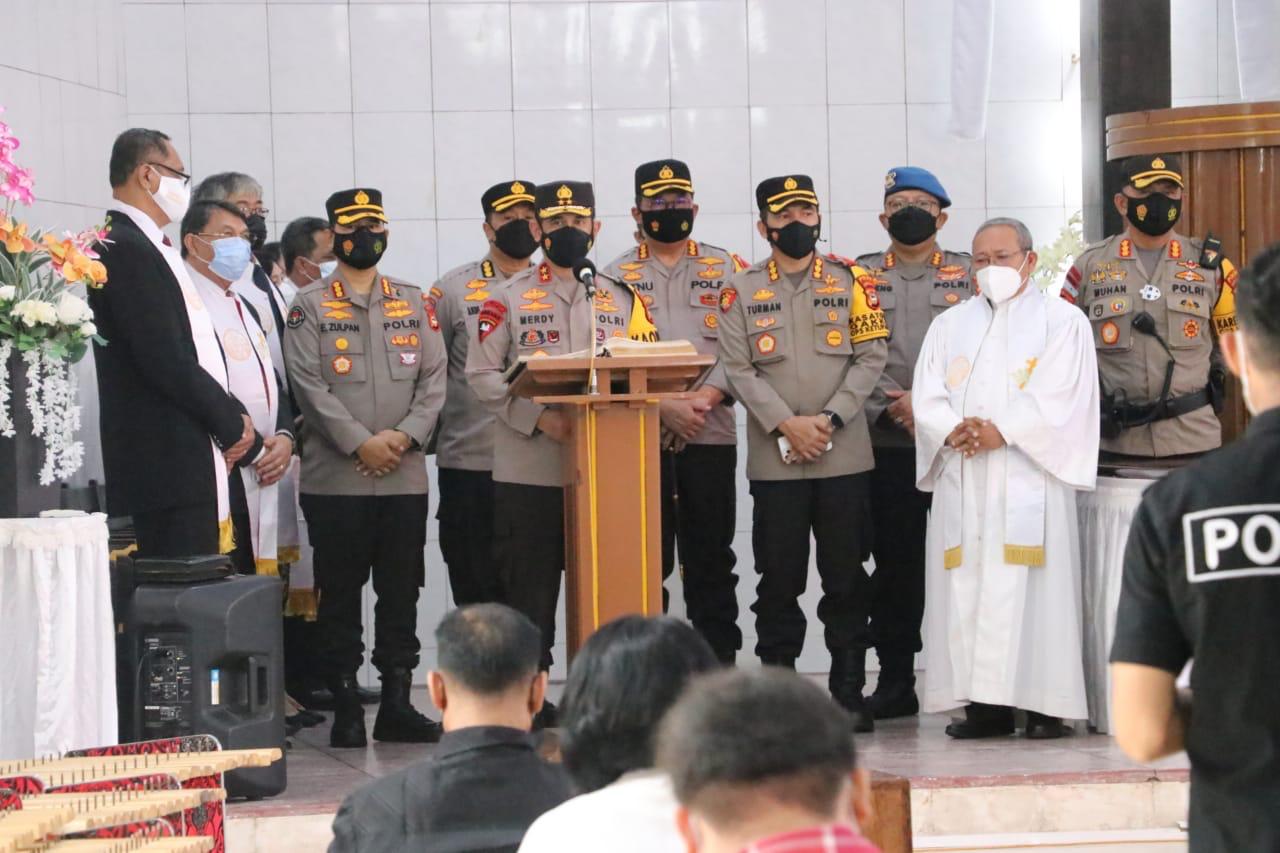 MAKASSAR,RAKYATSULBAR.COM–Kapolda Sulsel Irjen Pol Drs.Merdisyam menyambangi Gereja GPIB Immanuel Makassar Jl. Arief Rate dan Gereja YKI Jl Andalas, Makassar, untuk memantau pengamanan Perayaan Kenaikan Isa Al-Masih, Kamis (13/05/2021)
