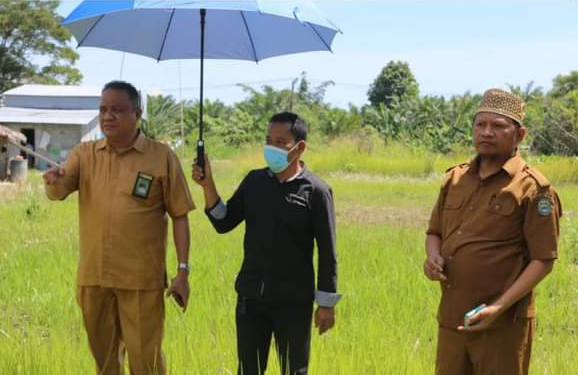 MATENG,RAKYATSULBAR.COM – Kepala Kantor Wilayah Kementerian Agama Provinsi Sulawesi Barat Dr. H. M. Muflih B. Fattah, MM didampingi Ka.Kankemenag Mamuju Tengah Drs. H. Mahmuddin, M.Si melihat titik lokasi pembangunan lokasi PPHU (Pusat Pelayanan Haji dan Umrah) di Kab. Mamuju Tengah,Selasa, (08/06/ 2021)