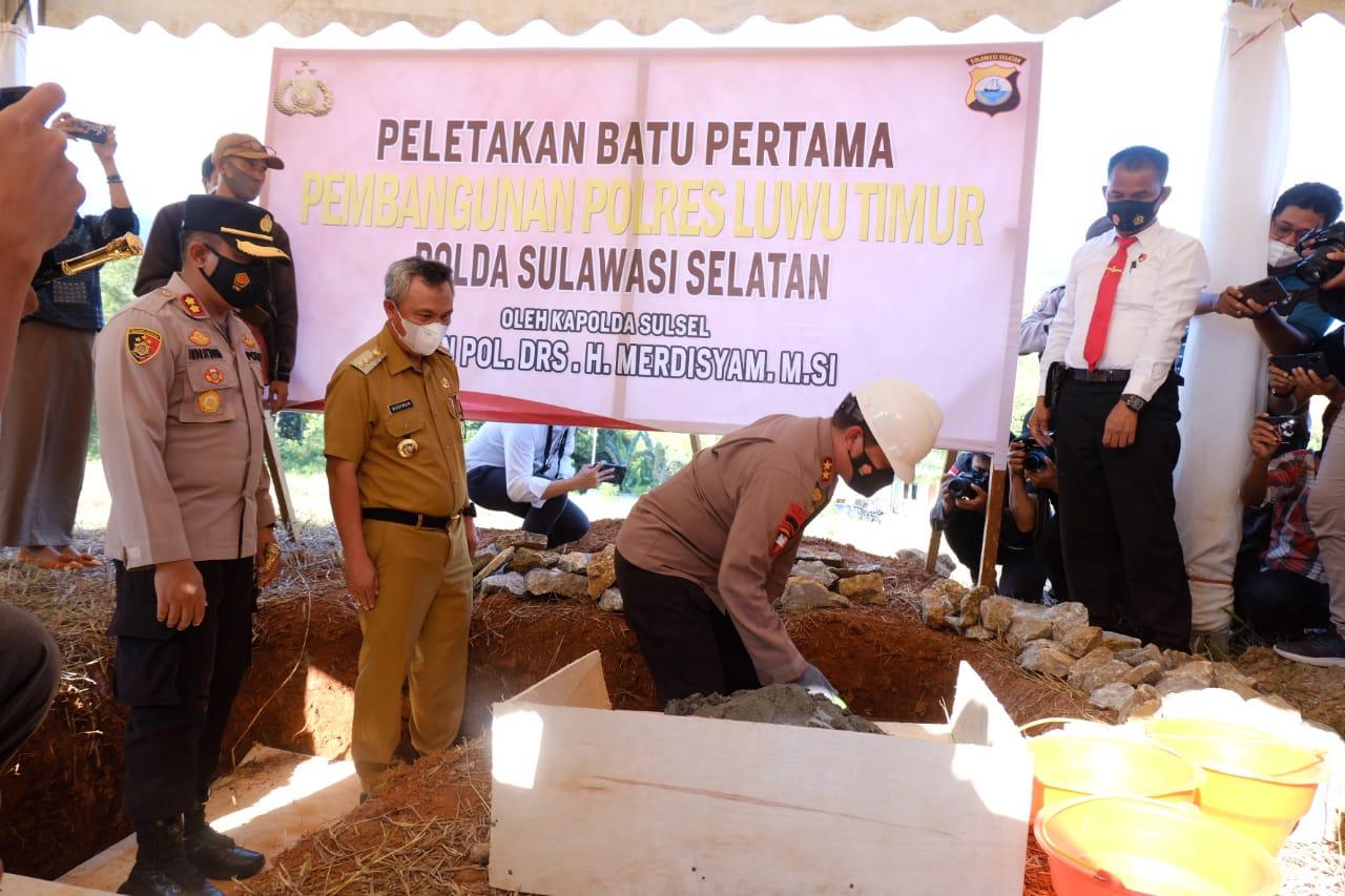 MAKASSAR,RAKYATSULBAR.COM-Dalam kunjungan kerjanya di Kabupaten Luwu Timur, Kapolda Sulsel Irjen Pol Merdisyam meletakkan batu pertama pembangunan Markas Komando (Mako) Polisi Resort (Polres) Luwu Timur (Lutim). serta meresmikan dan penandatanganan prasasti rumah susun Polres Lutim, di Rumah susun Polres Lutim, Kamis, (10/6/2021)