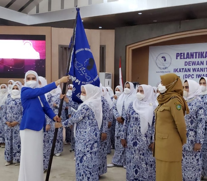 MAROS,RAKYATSULBAR.COM– Ketua DPD IWAPI Sulawesi Selatan Hj Ainun Jariah untuk pertama kalinya melantik Ketua dan pengurus DPC IWAPI Kabupaten Maros, Kamis (10/6/2021).