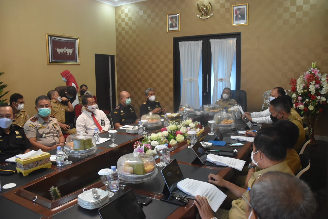 MAMUJU,RAKYATSULBAR.COM–Gubernur Sulbar Ali Baal Masdar bersama Kepala Kantor Wilayah Ditjen Bea dan Cukai (Kakanwil DJBC) Sulawesi Bagian Selatan, Barat dan Tenggara, Parjiya dan Kepala Kantor Wilayah Ditjen Perbendaharaan (Kakanwil DJPb) Sulbar, Imik Eko Putro, melakukan rapat di Rumah Jabatan Gubernur Sulbar, Senin (14/06/2021)
