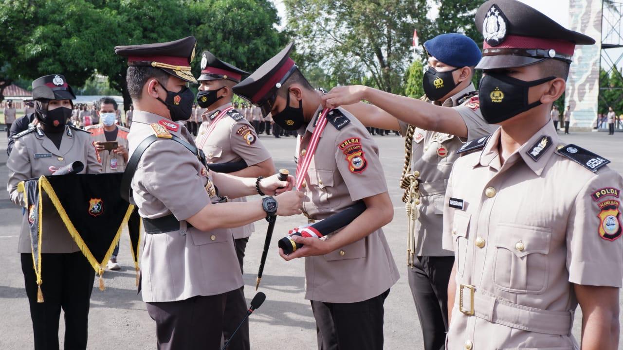 Selanjutnya Penanggalan Tanda Siswa, Pemasangan Tanda Pangkat Efektif, Penyerahan Ijazah dan Pemberian Penghargaan kepada 3 orang siswa terbaik pada bidang akademik, mental dan jasmani,sebelumnya dibacakan Keputusan Kapolri tentang Pengangkatan dan Penggajian Bintara Polri Lulusan Diktukba Polri T.A 2020-2021.