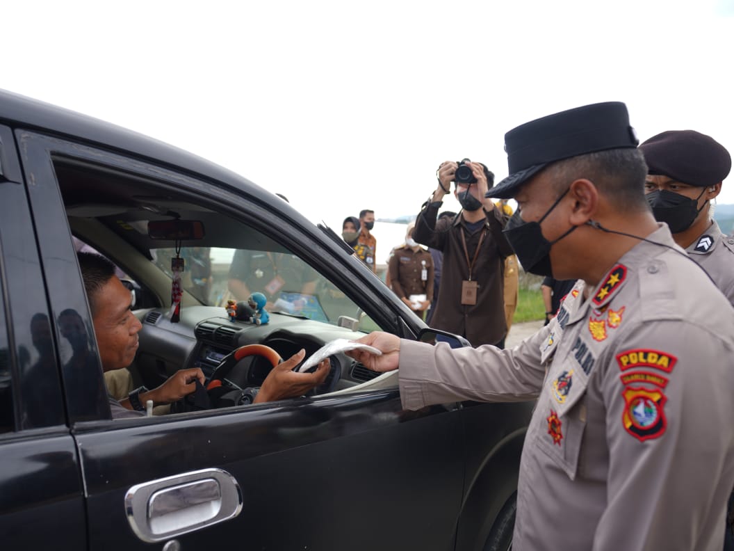 MAMUJU,RAKYATSULBAR.COM— Kapolda Sulbar Irjen Pol. Eko Budi Sampurno Bersama Forkopimda membagikan masker ke warga di tiga lokasi diantaranya depan KFC Mamuju,Jln Arteri serta di Pasar baru,Kamis (8/7).