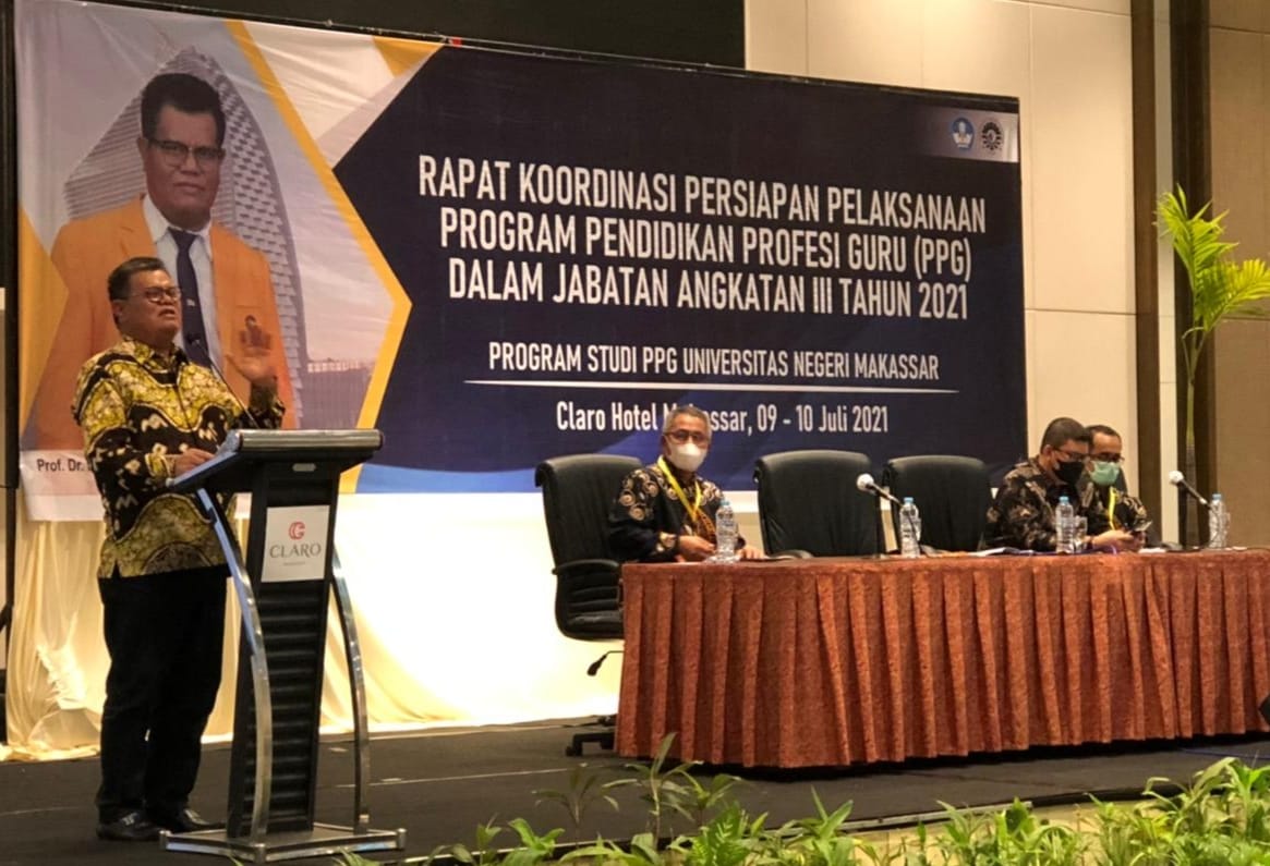 MAKASSAR,RAKYATSULBAR.COM-Program Pendidikan Profesi Guru (PPG) menggelar Rapat Koordinasi Persiapan Pelaksanaan Dalam Jabatan Angkatan lll Tahun 2021,di Hotel Claro, Jumat (9/7/2021)