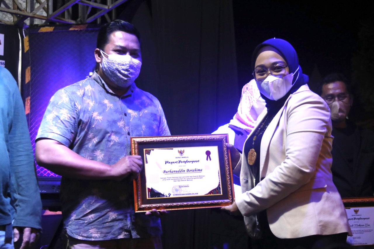 MAMUJU,RAKYATSULBAR.COM-Tujuh orang maestro pencipta kelong (lagu) Mamuju,menerima penganugrahan penghargaan dari bupati Mamuju Hj.Sitti Sutinah Suhardi.