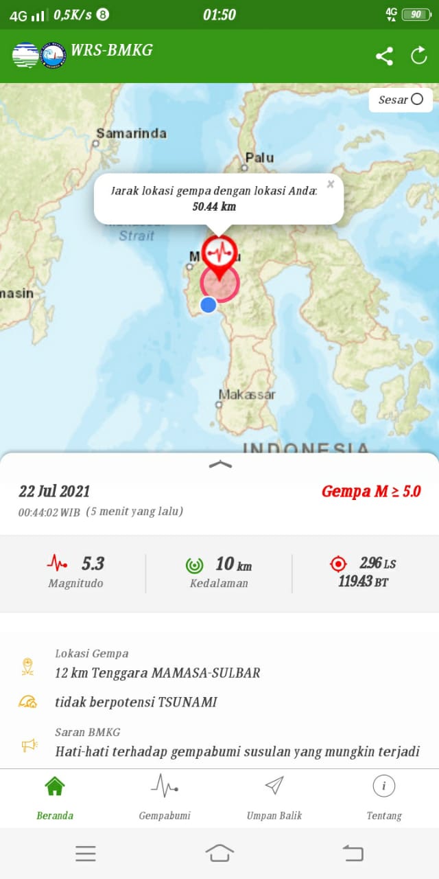 Hari Kamis, 22 Juli 2021, wilayah Kabupatan Mamasa, Sulawesi Barat diguncang Gempabumi Tektonik.
