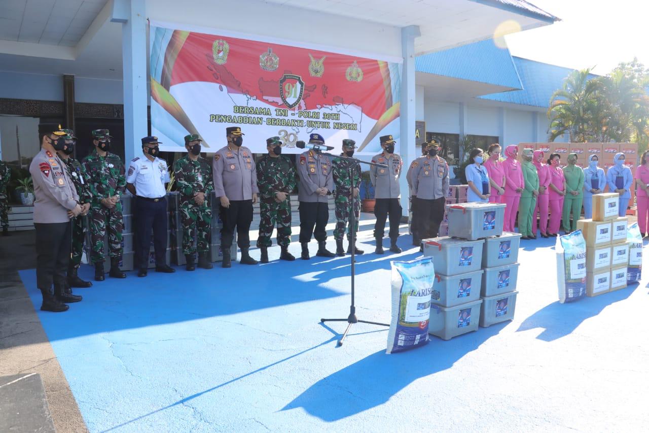 MAKASSAR,RAKYATSULBAR.COM-Kapolda Sulawesi Selatan (Sulsel) Irjen Pol Merdisyam bersama Pangkoops AU II Masda TNI Minggit Tribowo, yang merupakan satu alumni Akabri angkatan tahun 1991, melakukan bakti sosial berupa penyerahan bantuan paket sembako secara simbolis bersama TNI – Polri mengabdi untuk Negeri, 30 tahun pengabdian Akabri 1991.