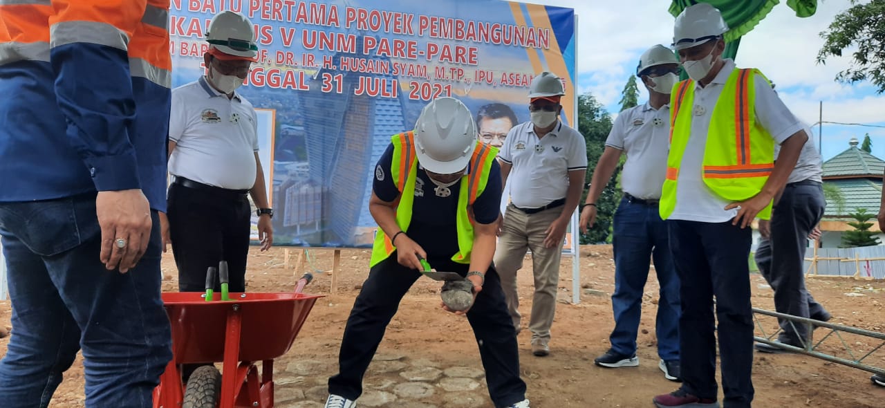 PAREPARE,RAKYATSULBAR.COM–Rektor Universitas Negeri Makassar, Prof Dr Ir Husain Syam, meletakkan batu pertama pembangunan gedung baru kampus UNM Parepare, Sabtu (31/7).