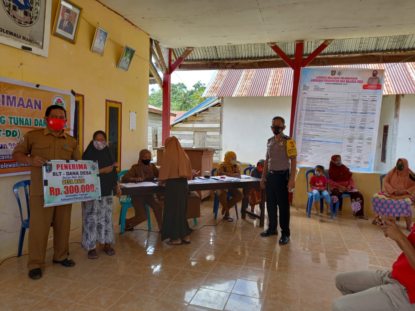 POLMAN,RAKYATSULBAR.COM – Bhabinkamtibmas Aipda Johari Manihuruk melaksanakan giat Monitoring dan pengawasan penyaluran bantuan langsung tunai (BLT) DD Tahap V dan VI Tahun 2021 yang diserahkan langsung oleh Kepala Desa Batu Bapak Sunarto,kepada masyarakat Desa Batu, Selasa (03/08/2021)