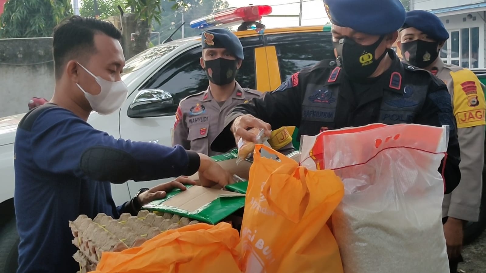 Batalyon C Pelopor Satbrimob Polda Sulsel kembali menyalurkan bantuan sembako dan makanan siap saji kepada personel yang tengah menjalankan Isoman di rumah masing-masing. Dalam pelaksanaan kegiatan bakti sosial kali ini, Brimob Bone mendapatkan dukungan dari Badan Amil Zakat Nasional ( BAZNAS ) Kabupaten Bone,Jumat (6/8)