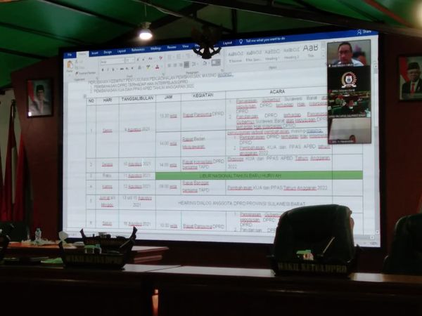 Pada rapat tersebut diihadiri oleh wakil ketua DPRD Sulbar H. Abdul Rahim dan beberapa anggota dewan lainnya yaitu H. Sukardi M Noer, Junset Budi Bombong, H. Arif Daeng Matemmu serta dihadiri secara virtual oleh Ir. Andi Muslim Fattah dan Drs. H. Hasanuddin.