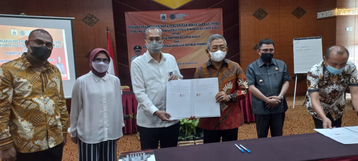 Hal tersebut ditandai dengan dilakukannya penandatanganan bersama Nota Perjanjian Hibah Daerah (NPHD) Pembangunan Gedung BLK Sulbar oleh Gubernur Sulbar Ali Baal Masdar dengan Dirjen Pembinaan Pelatihan Vokasi dan Produktivitas (Binalavotas) Kemnaker RI, Budi Hartawan, Kamis, (26/8), di Hotel Balairung Jl. Matraman Raya, Jakarta.