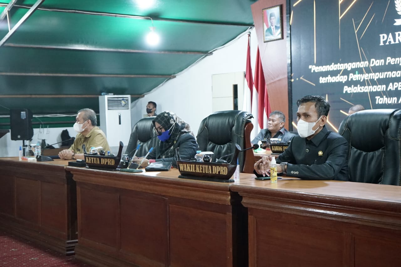 Adapun Eksekutif yang hadir dalam Rapat Paripurna malam ini yakni Asisten III, Kepala Bappeda, Kepala Biro Hukum, Kasatpol-PP, Kepala Dinas Kesehatan, Kepala Dinas Perumahan, Kepala BPSDM, Kepala Dinas Sosial, Staff Ahli, Kepala UPTD PPLP dan Biro Umum.
