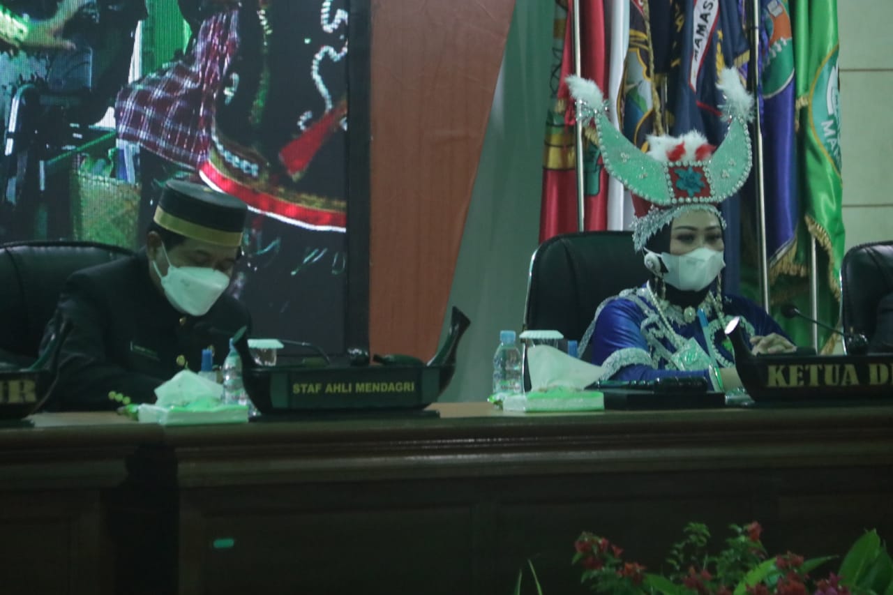 Rapat dipimpin langsung Ketua DPRD Sulbar, Suraidah Suhardi,dan rapat paripurna tersebut dihadiri para Bupati/Wakil Bupati se-Sulbar, anggota DPR RI yang juga merupakan Ketua TPP PKK Sulbar,Andi Ruskati Ali Baal, Staf Ahli Kemendagri, Suhajar Diantoro para Wakil Ketua DPRD Sulbar dan anggota DPRD Sulbar baik secara luring ataupun virtual unsur Forkopimda, Sekprov Muhammad Idris, para penerima penghargaan dan peserta rapat paripurna lainnya yang hadir secara virtual
