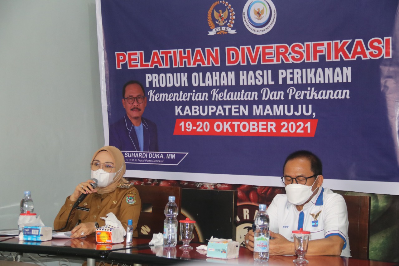 MAMUJU,RAKYATSULBAR.COM— Anggota Komisi IV DPR RI Dr. Suhardi Duka, MM bekerjasama dengan Kementerian Kelautan Dan Perikanan Kabupaten Mamuju menyelenggarakan Pelatihan Diversifikasi Produk Olahan Hasil Perikanan untuk kaum ibu pelaku usaha yang didominasi para istri nelayan. Acara ini dilangsungkan di Warkop Daeng Arif Mamuju, Selasa, (19/10)