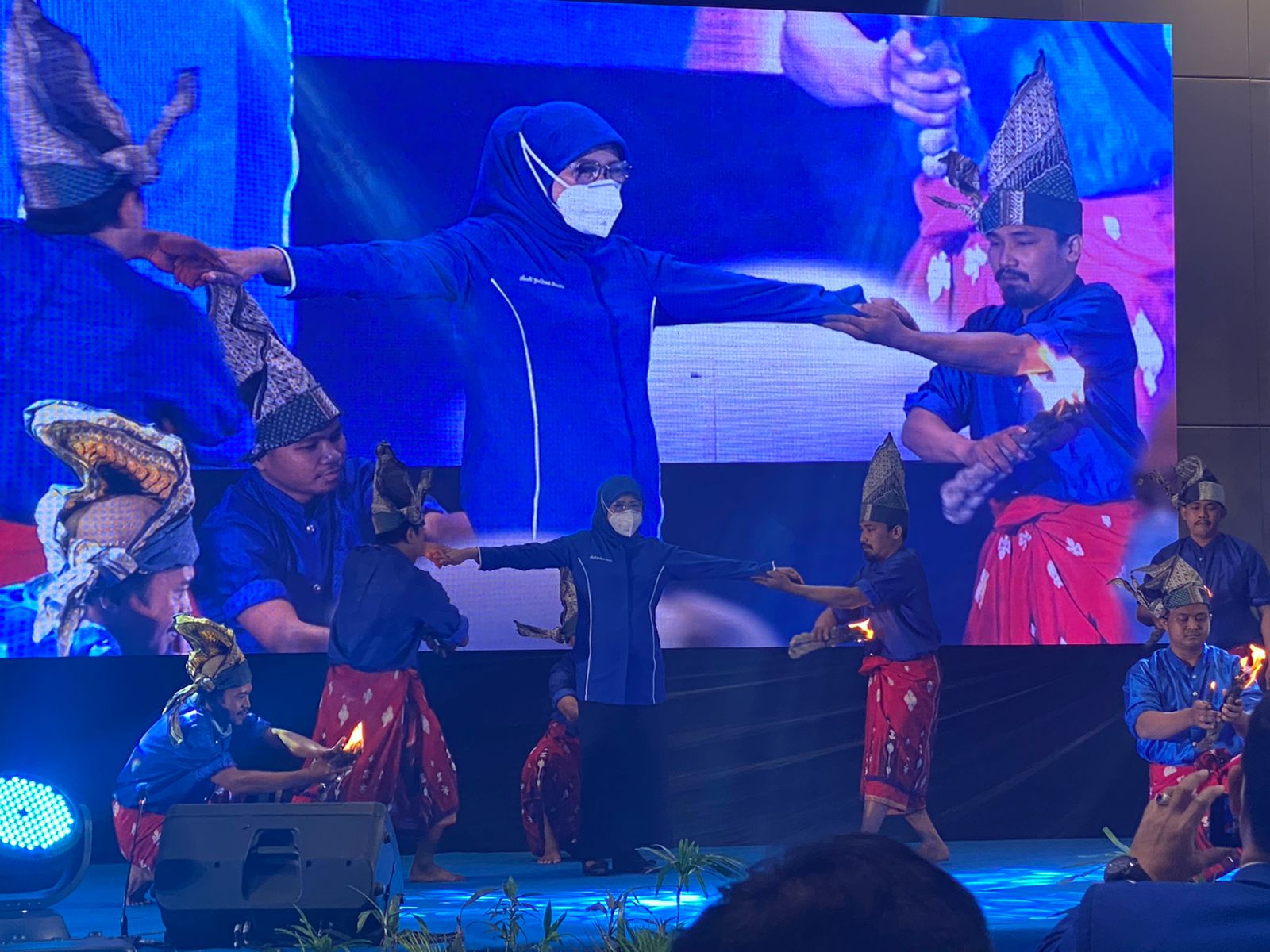 Perempuan yang digelari “Srikadi dari Timur” ini dipanggil naik ke atas panggung oleh penari untuk menunjukkan aksinya membakar tubuh.