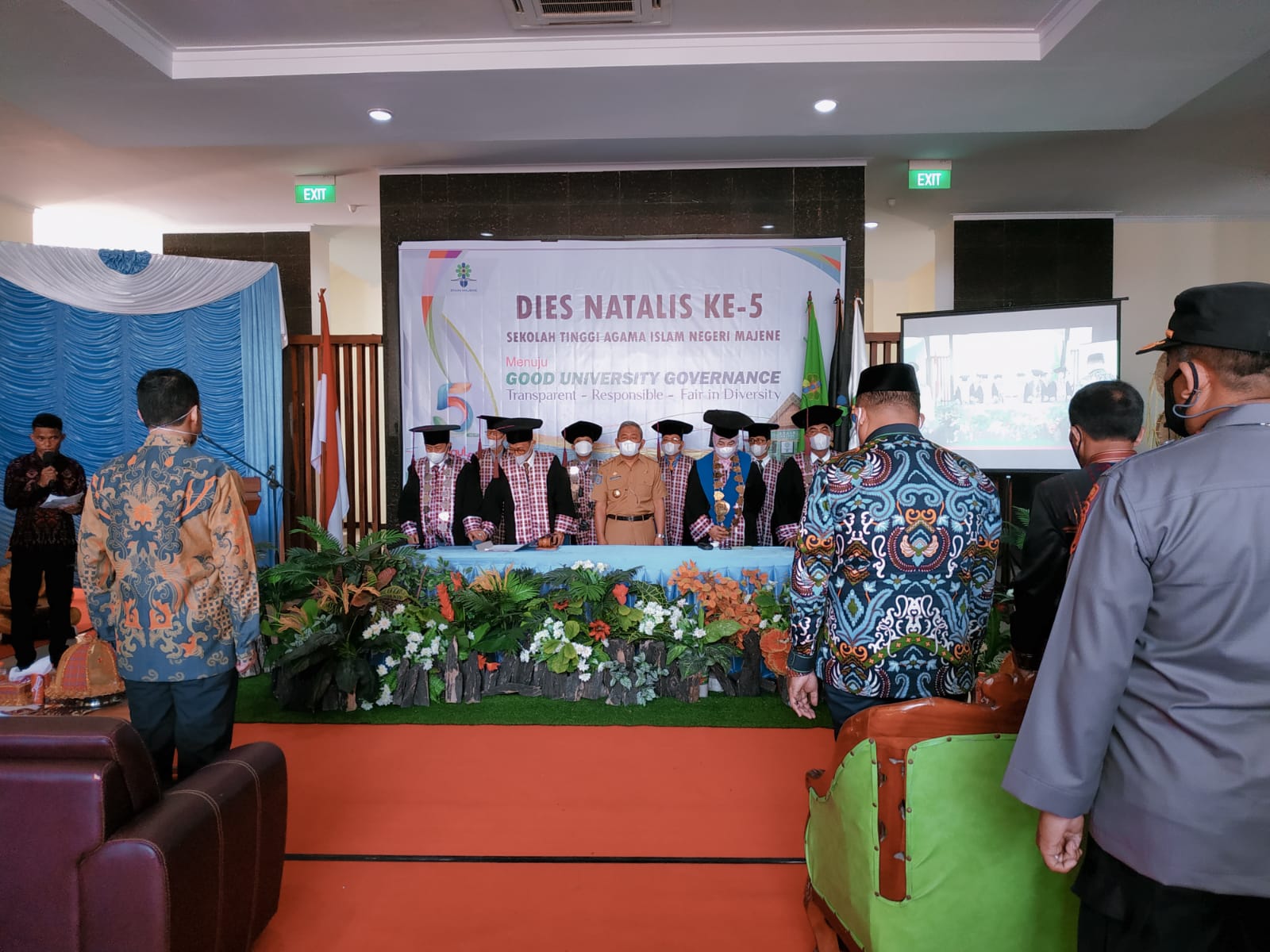 ” Usia lima tahun STAIN Majene ini diharapkan menjadi momentum bagi segenap jajaran akademika untuk mengembangkan diri, termasuk, mengokohkan eksistensi sebagai perguruan tinggi keagamaan negeri di Sulbar,” sebut Ali Baal Masdar