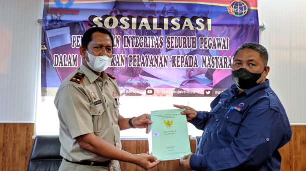 Disela-sela pemberian penguatan tentang integritas kepada Kantah Kabupaten Mamuju, Ombudsman Sulbar menerima Sertifikat atas tanah hibah yang diberikan oleh Pemprov Sulbar setelah berproses pada Selasa, (28/12)