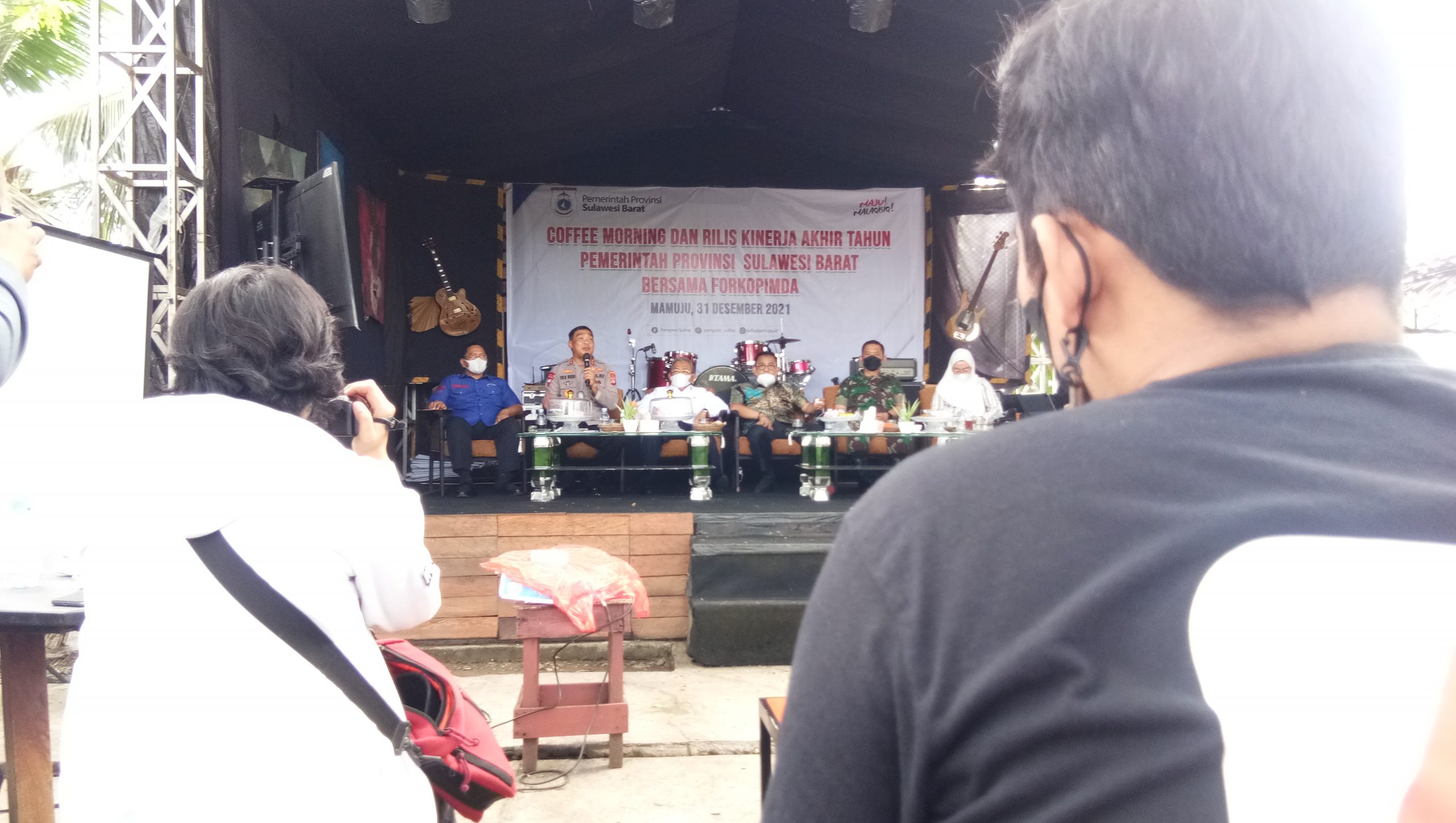 MAMUJU,RAKYATSULBAR.COM–Pemerintah Provinsi Sulawesi Barat (Sulbar) bersama dengan Unsur Forkopimda gelar Coffee Morning dan Rilis Kinerja Akhir Tahun 2021 di Nal Cafe, Kompleks Rumah Adat Mamuju, Jumat, (31/12)