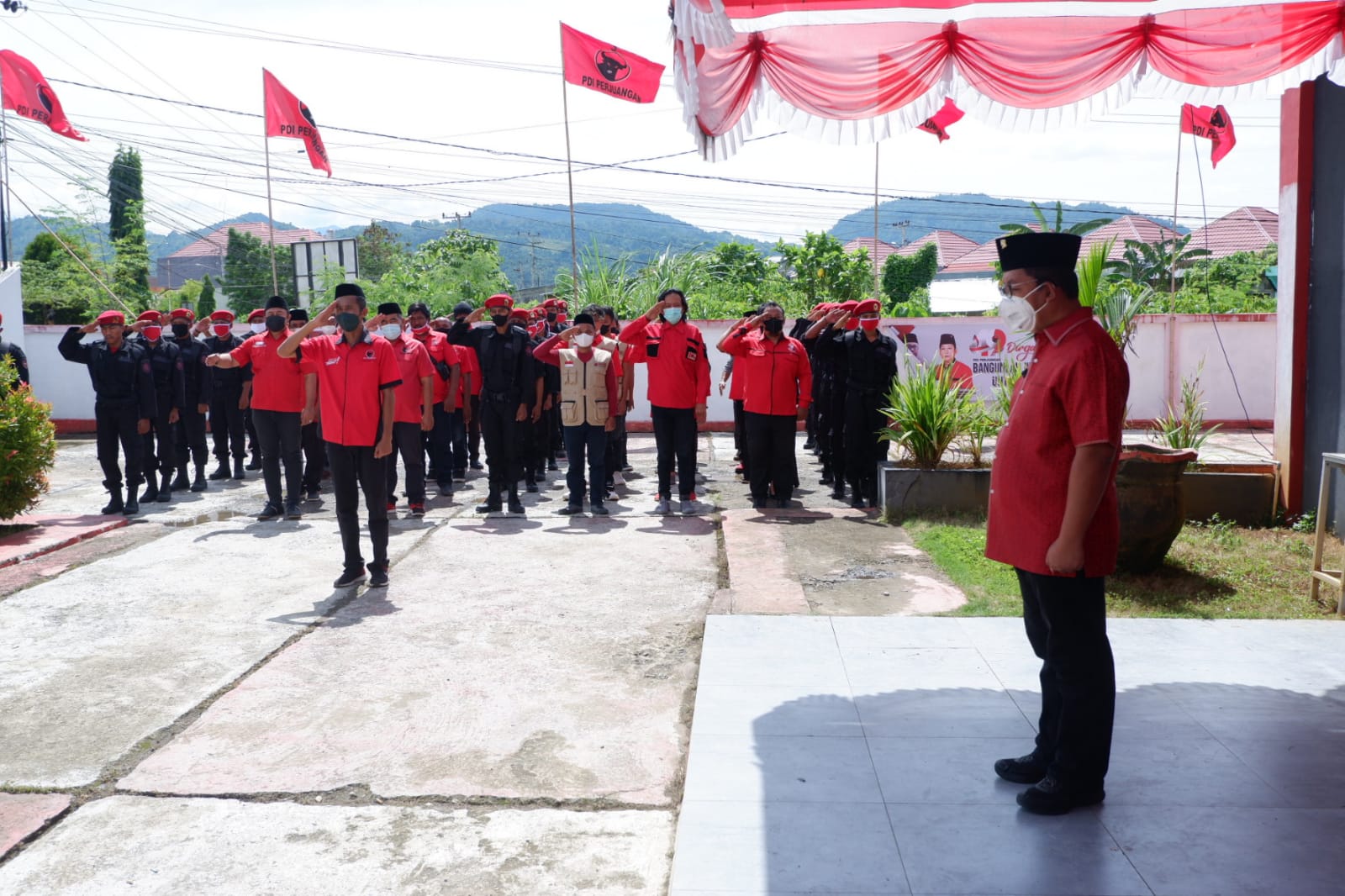 Upacara dilaksanakan di Kantor DPD PDI Perjuangan, Jalan Mustafa Kajjo, Mamuju. Senin (10/1).
