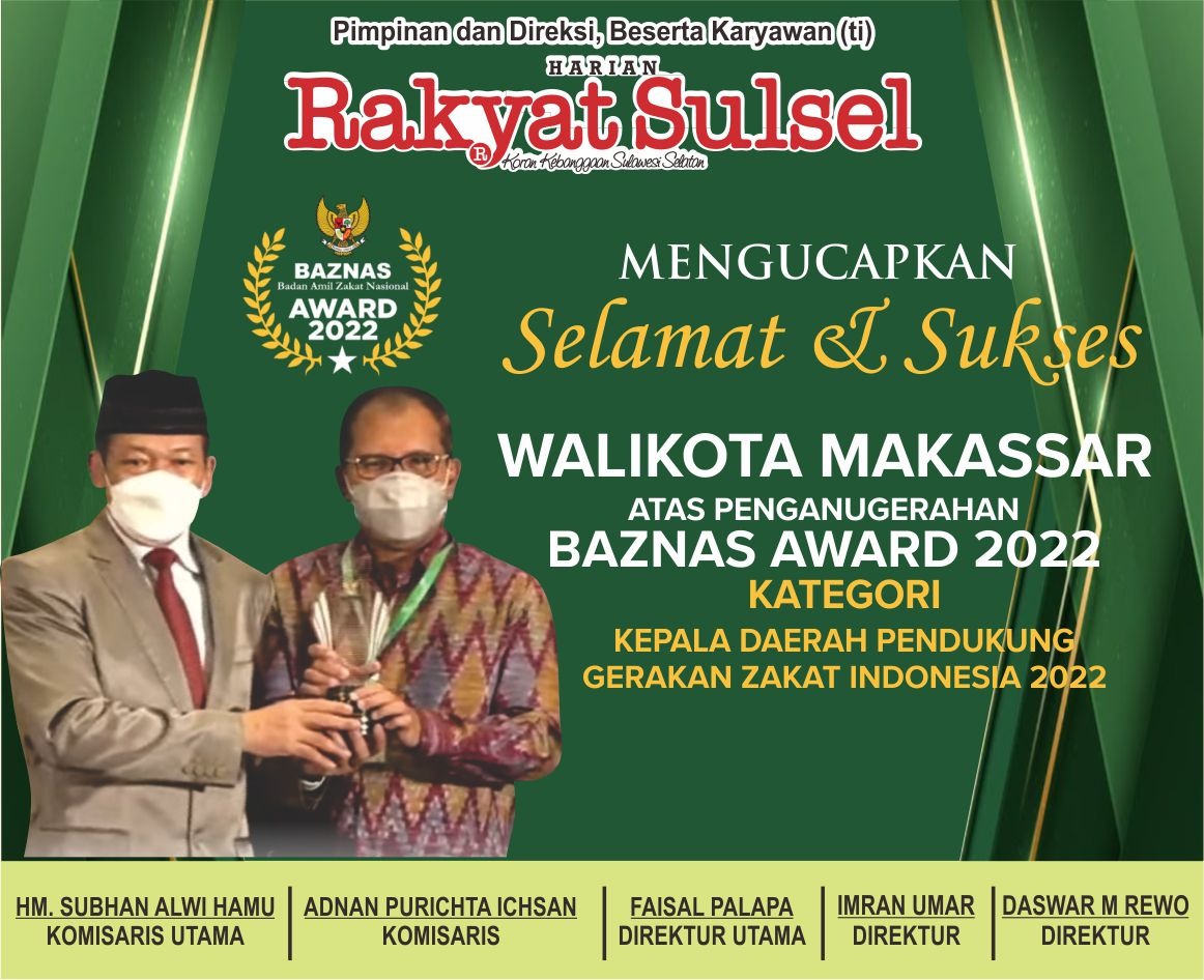 Wali Kota Makassar Dianugerahi Penghargaan Baznas Award 2022