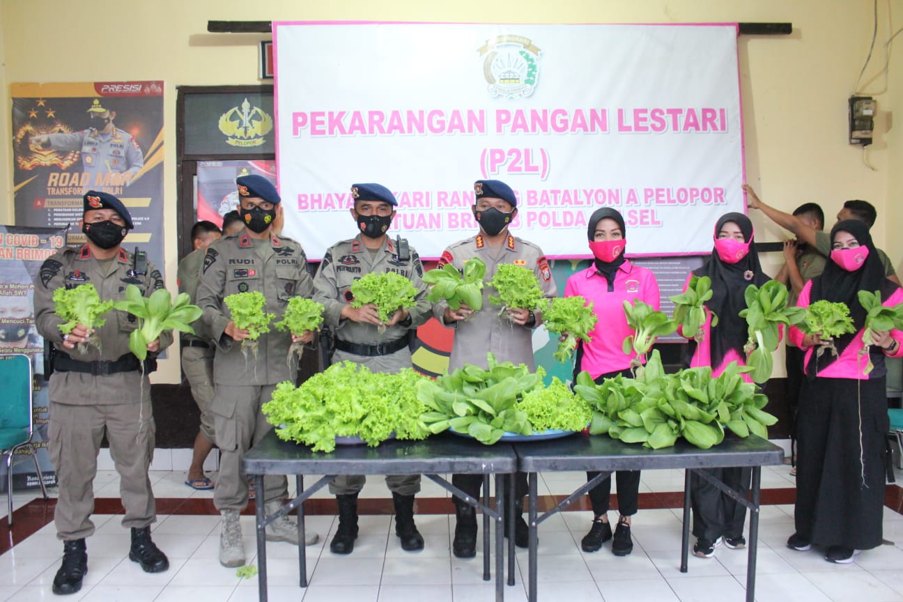 Pekarangan Pangan Lestari (P2L) Bhayangkari Ranting Batalyon A Pelopor Satuan Brimob Polda Sulsel sudah lama dilakukan dan hasilnya pun sudah dinikmati oleh Personel Brimob Sulsel sendiri dan di bagikan kepada Masyarakat yang terdampak Covid – 19 ataupun yang terkena bencana alam dengan mendirikan dapur lapangan dimana Sayur mayur dan ikan yang disedikan dari hasil tersebut.