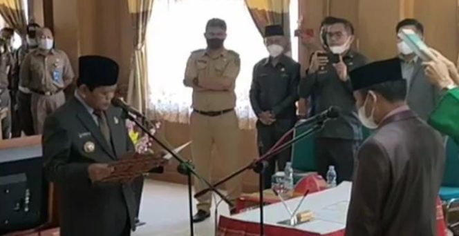 MAMASA, RAKYATSULBAR.COM— Bupati Mamasa DR.Ramlan Badawi, lantik Mantan Kepala Dinas pendidikan dan kebudayaan Kabupaten Mamasa Muhammad Syukur.S.Pd.,M.Pd, menjadi Sekretaris Daerah (Sekda) di ruang pola kantor Bupati Mamasa. Selasa, (15/2/2022).
